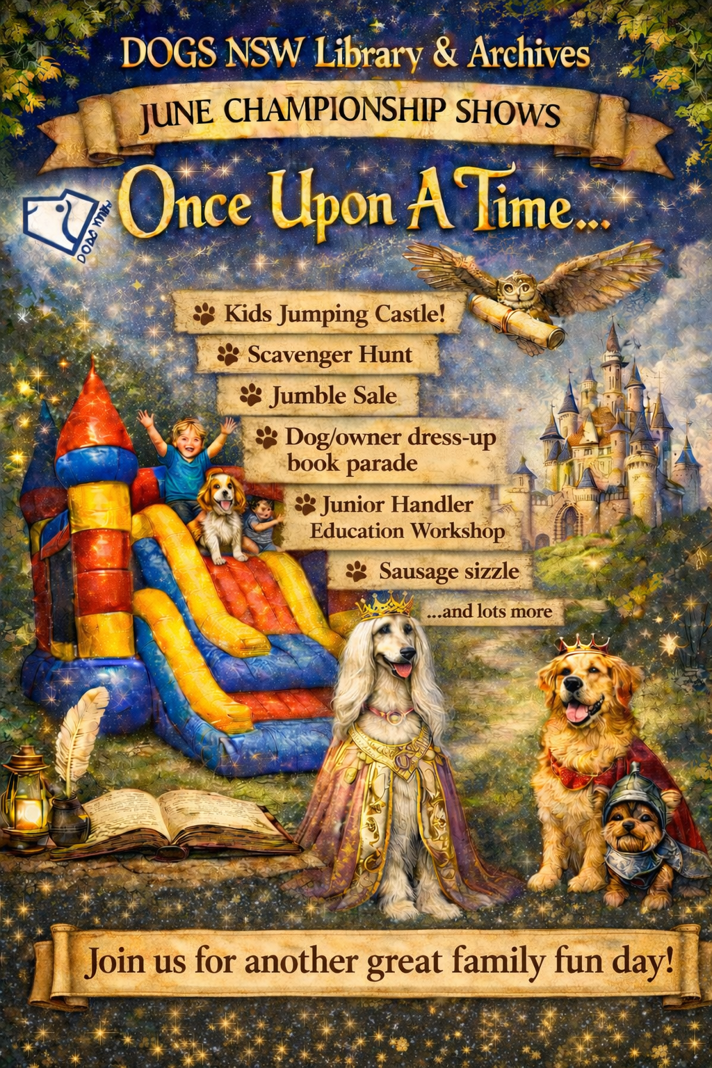 Join the DOGS NSW Library & Archives Committee for our Double Championship Dog Show with a whimsical “Once Upon a Time” theme, packed with fun for the whole family!